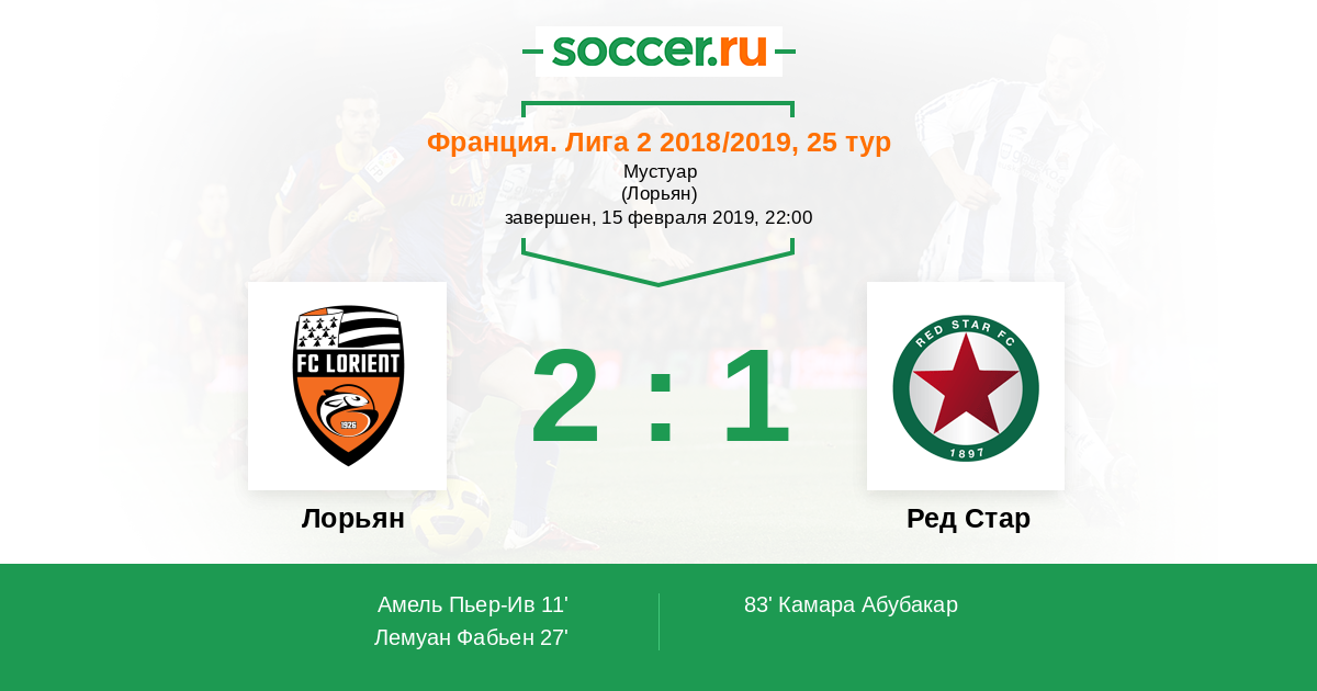 27' (2:0) Лемуан Фабьен (18) (Амель Пьер-Ив (29))