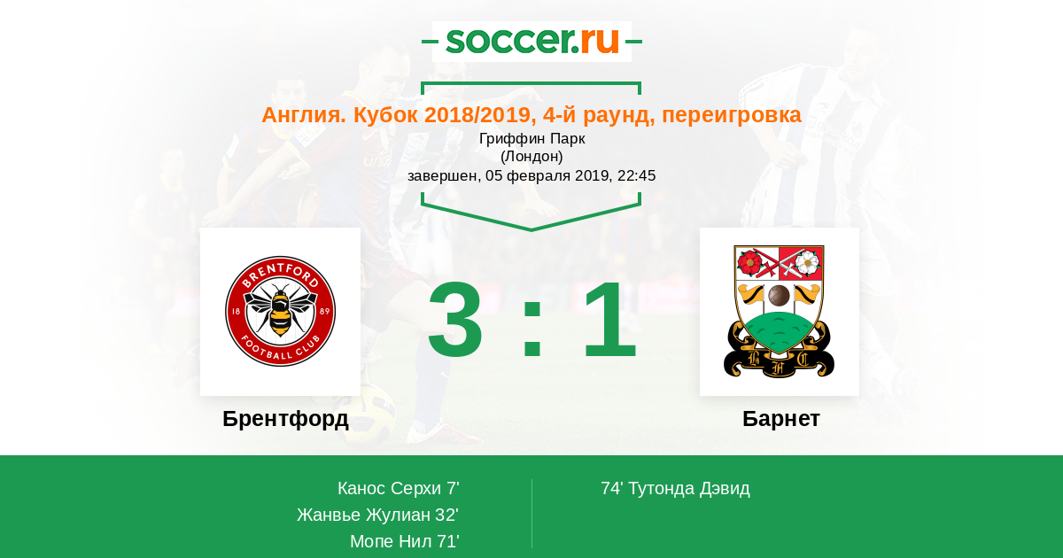 Протокол матча Брентфорд против Барнет
