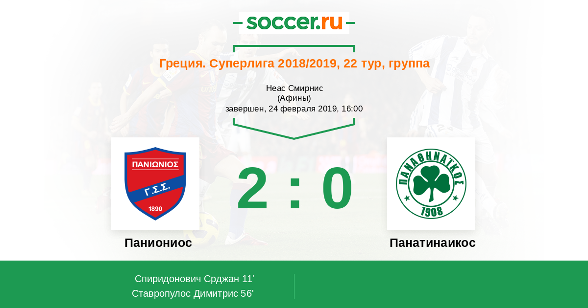 Протокол матча Паниониос против Панатинаикос