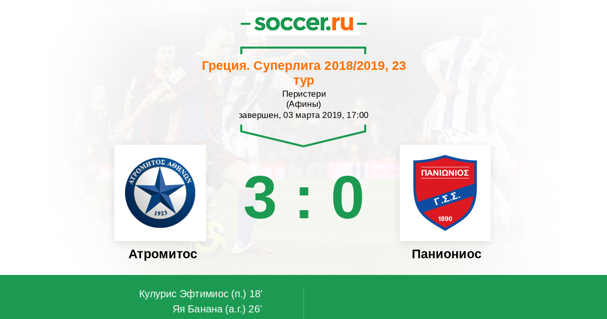 Протокол матча Атромитос против Паниониос