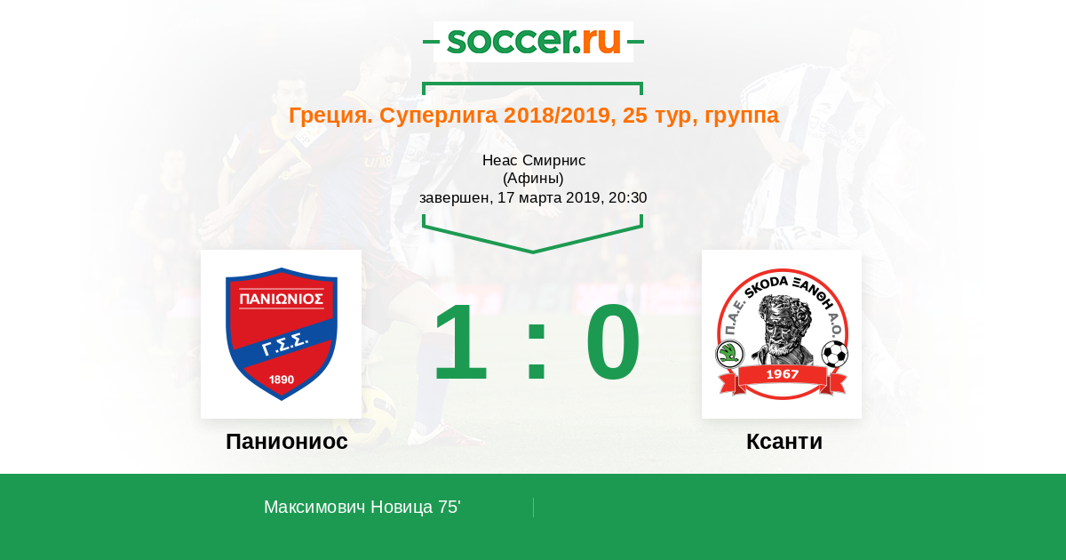 Протокол матча Паниониос против Ксанти