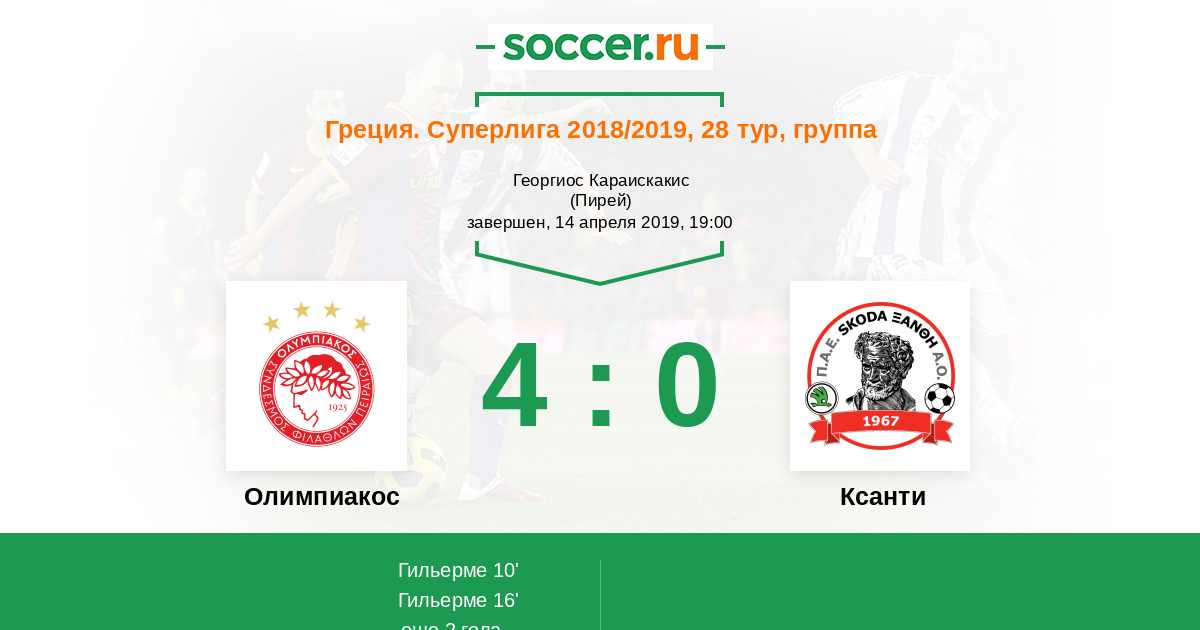 Протокол матча Олимпиакос против Ксанти