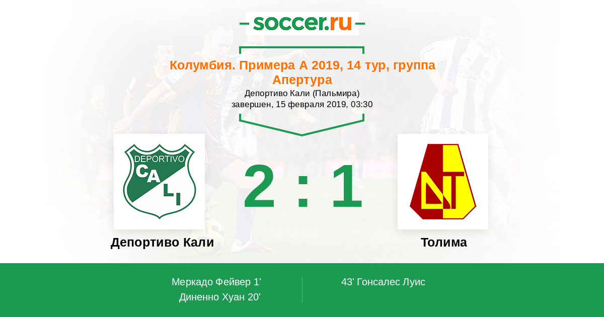 Протокол матча Депортиво Кали против Толима