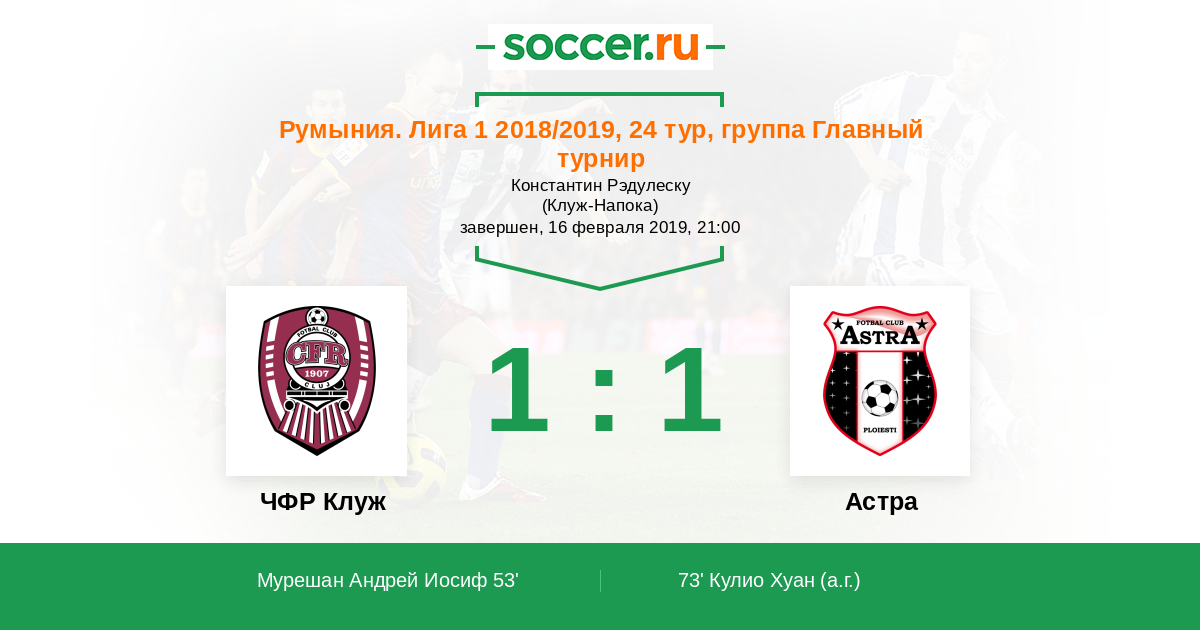 Протокол матча ЧФР Клуж против Астра