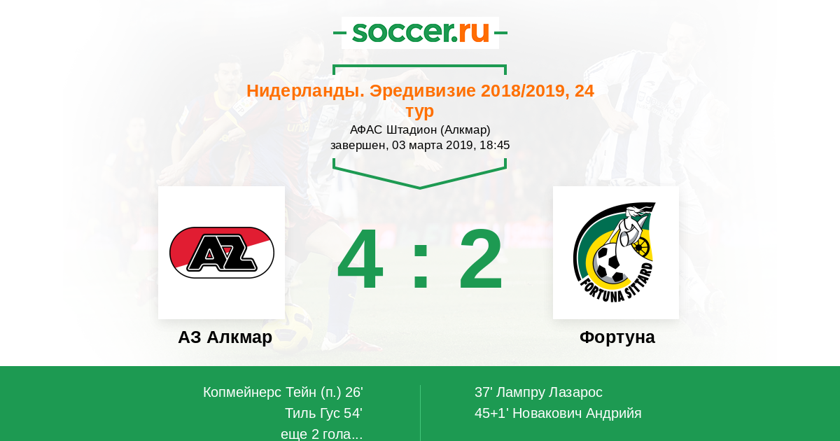 Протокол матча АЗ Алкмар против Фортуна