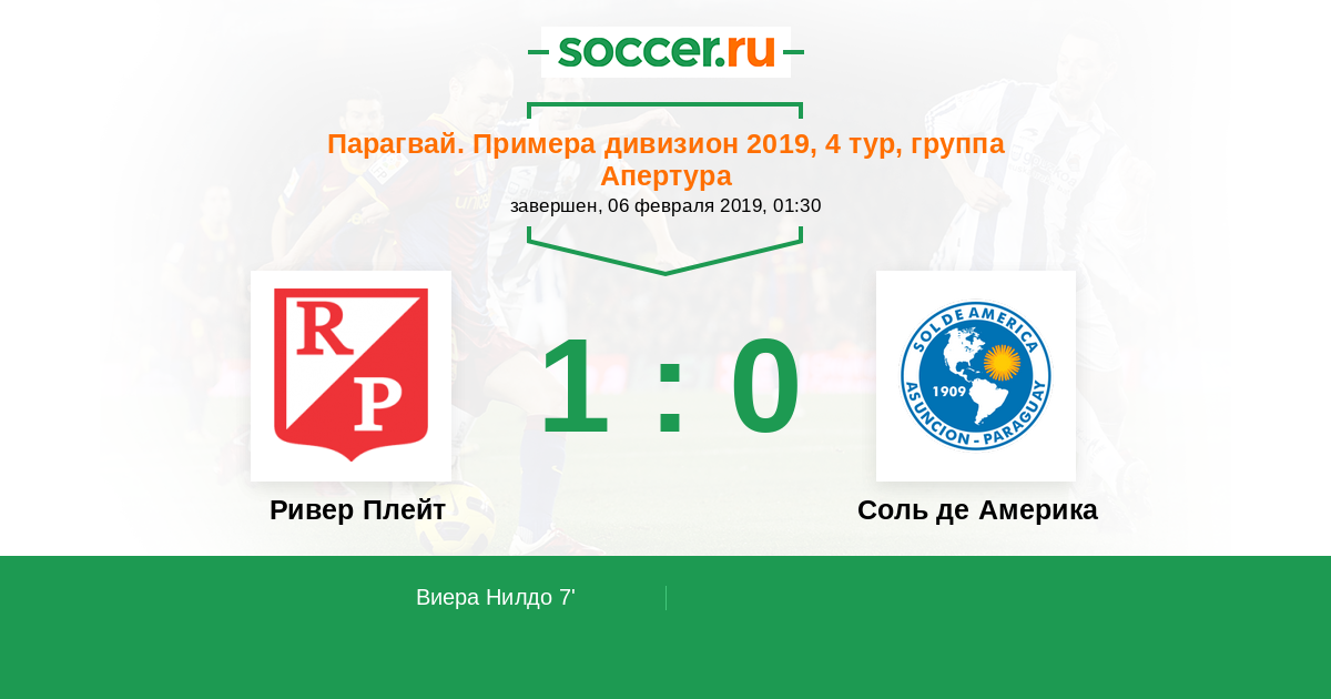 7' (1:0) Виера Нилдо (17) (Густаво Хименес (2))