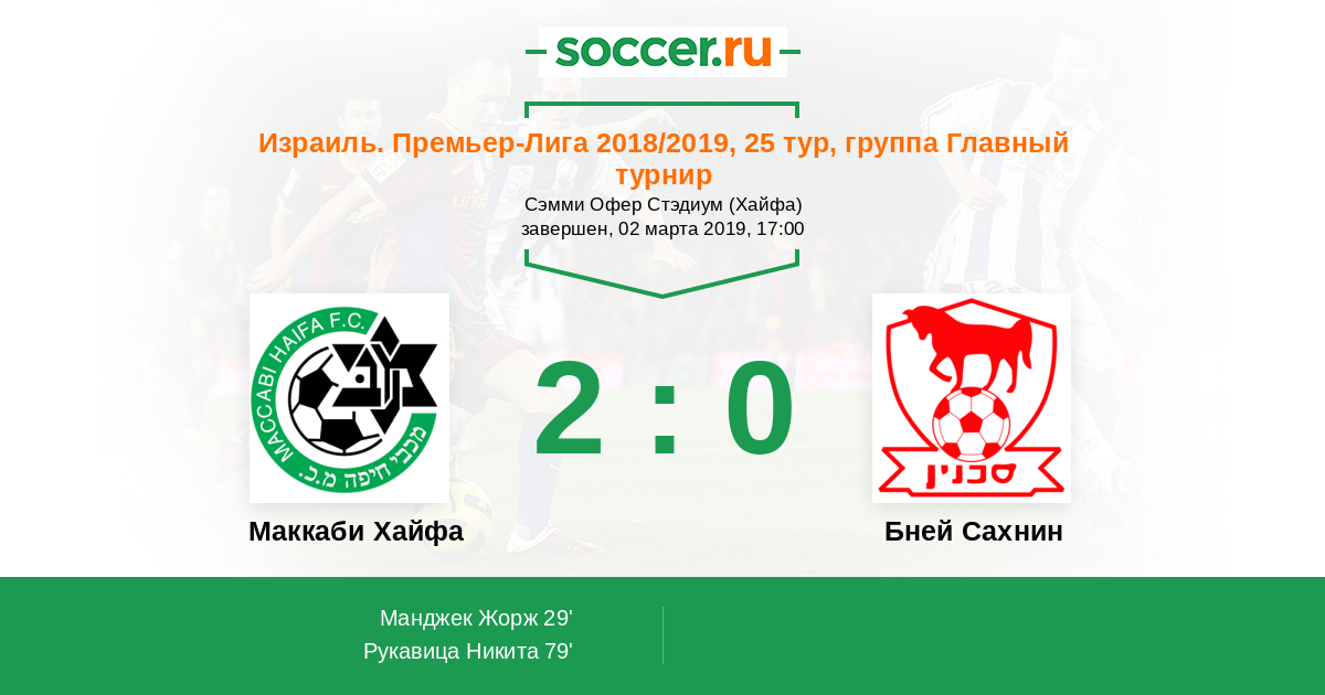 Протокол матча Маккаби Хайфа против Бней Сахнин
