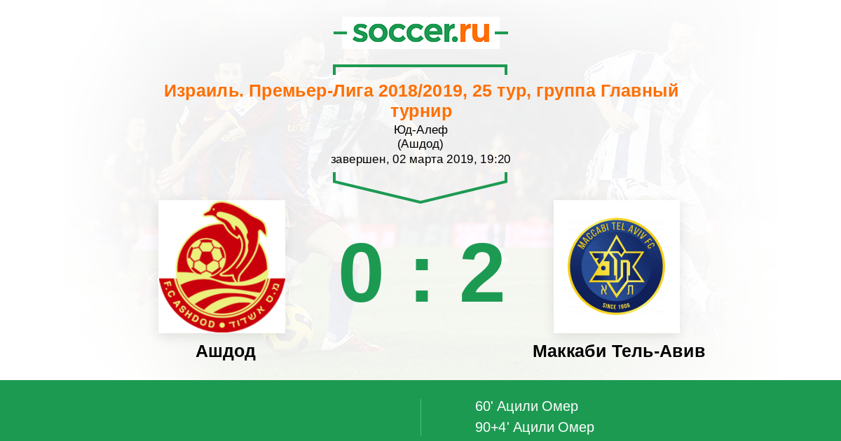 Протокол матча Ашдод против Маккаби Тель-Авив