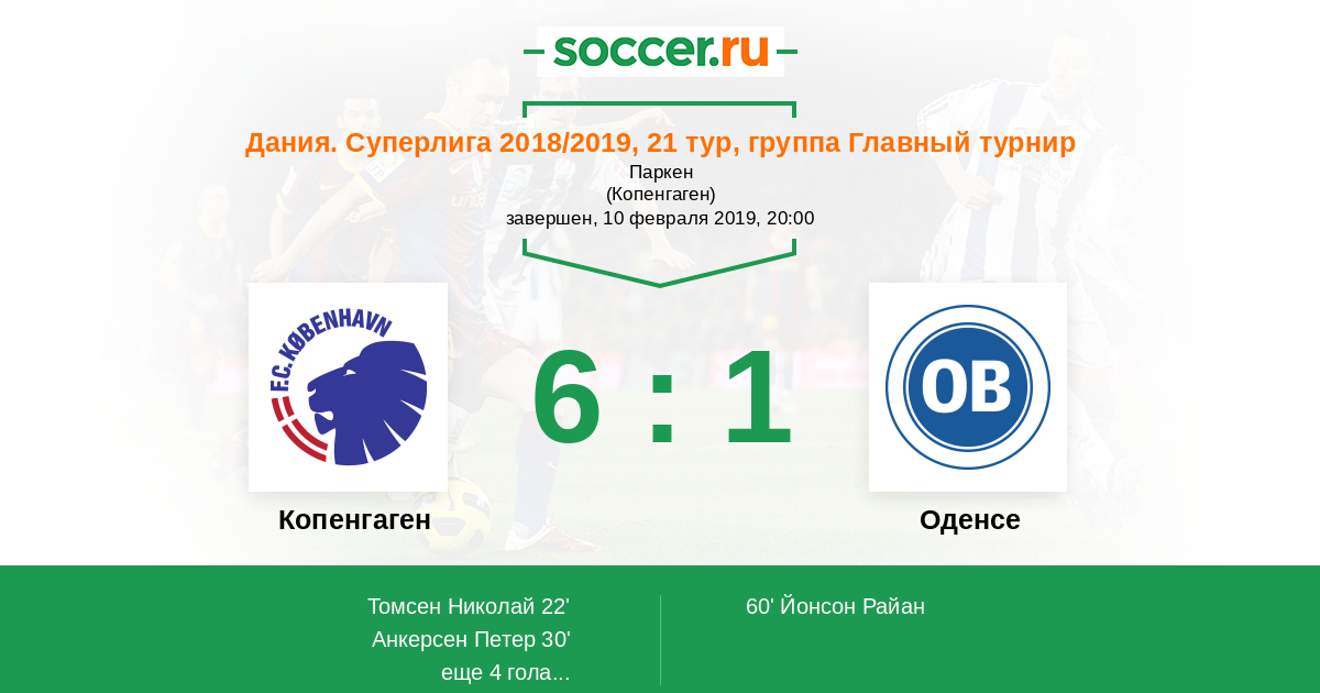 30' (2:0) Анкерсен Петер (22) (Сков Роберт (29))