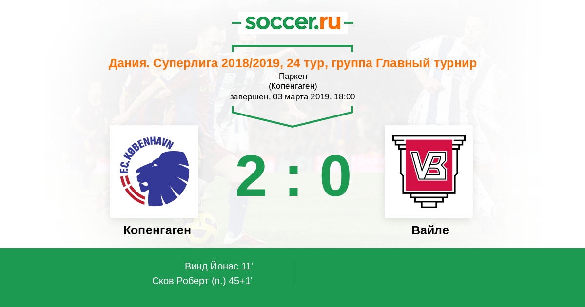 Протокол матча Копенгаген против Вайле