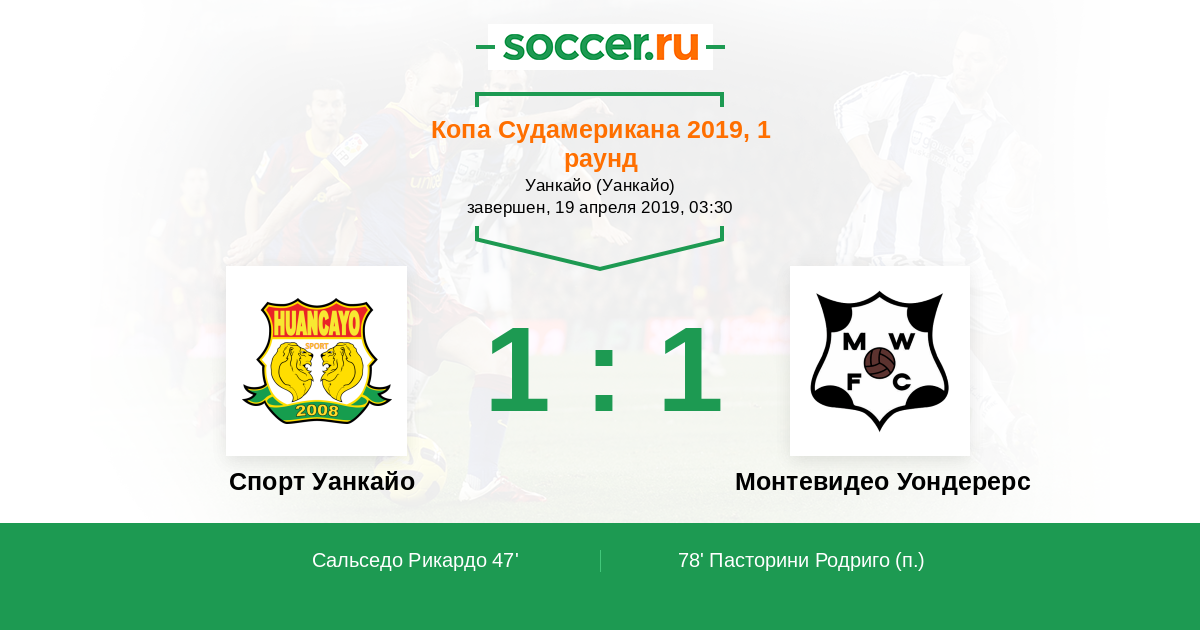 Протокол матча Спорт Уанкайо против Монтевидео Уондерерс