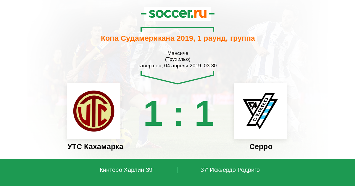 Протокол матча УТС Кахамарка против Серро