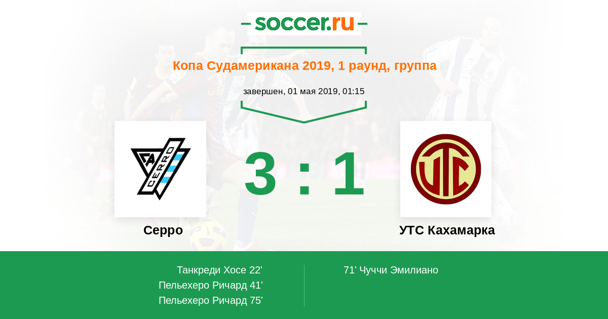 Протокол матча Серро против УТС Кахамарка