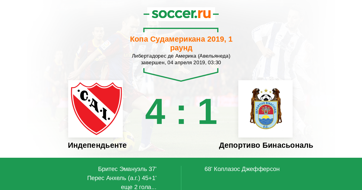 Протокол матча Индепендьенте против Депортиво Бинасьональ