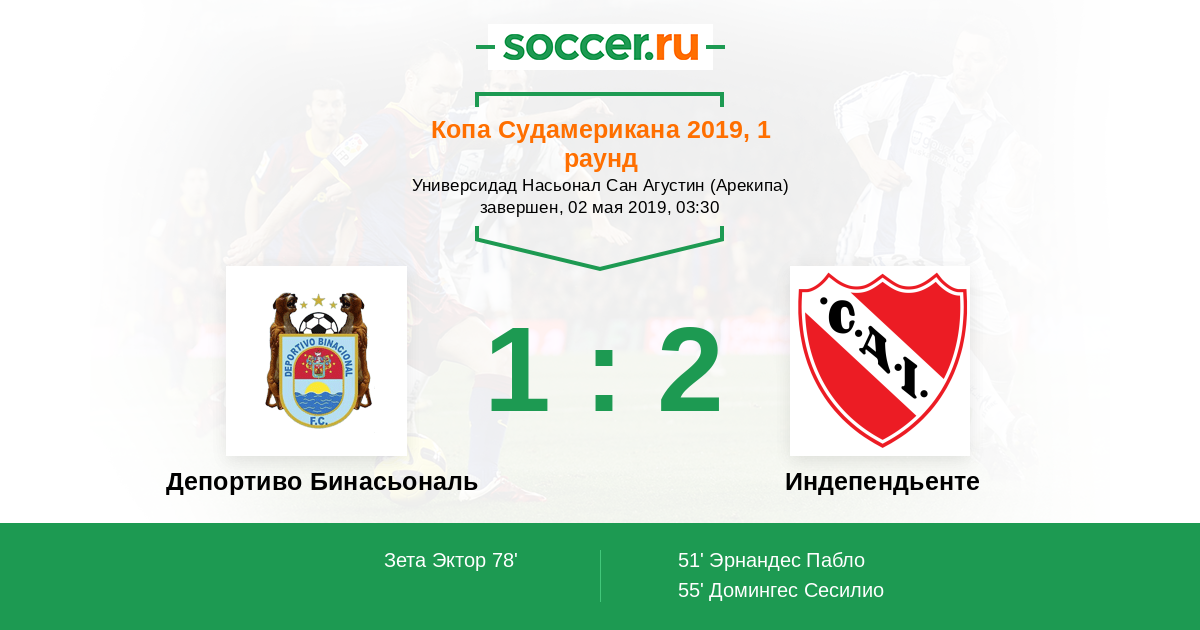 Протокол матча Депортиво Бинасьональ против Индепендьенте