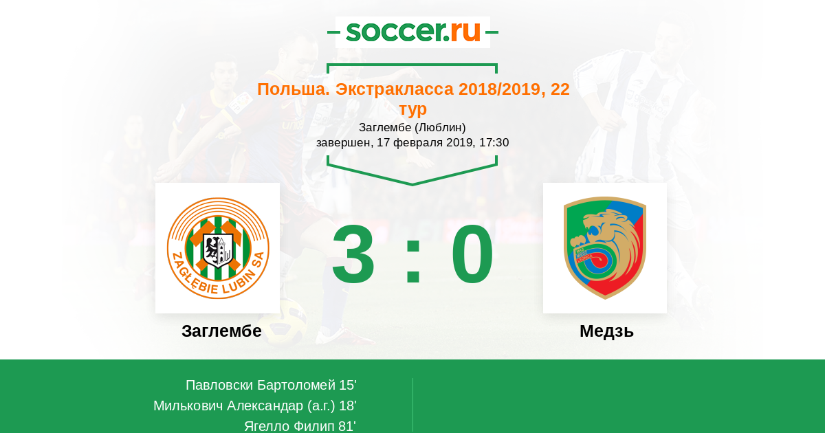 Протокол матча Заглембе против Медзь