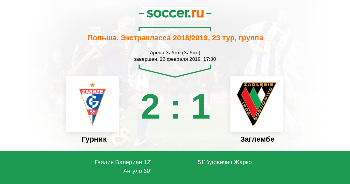 Протокол матча Гурник против Заглембе