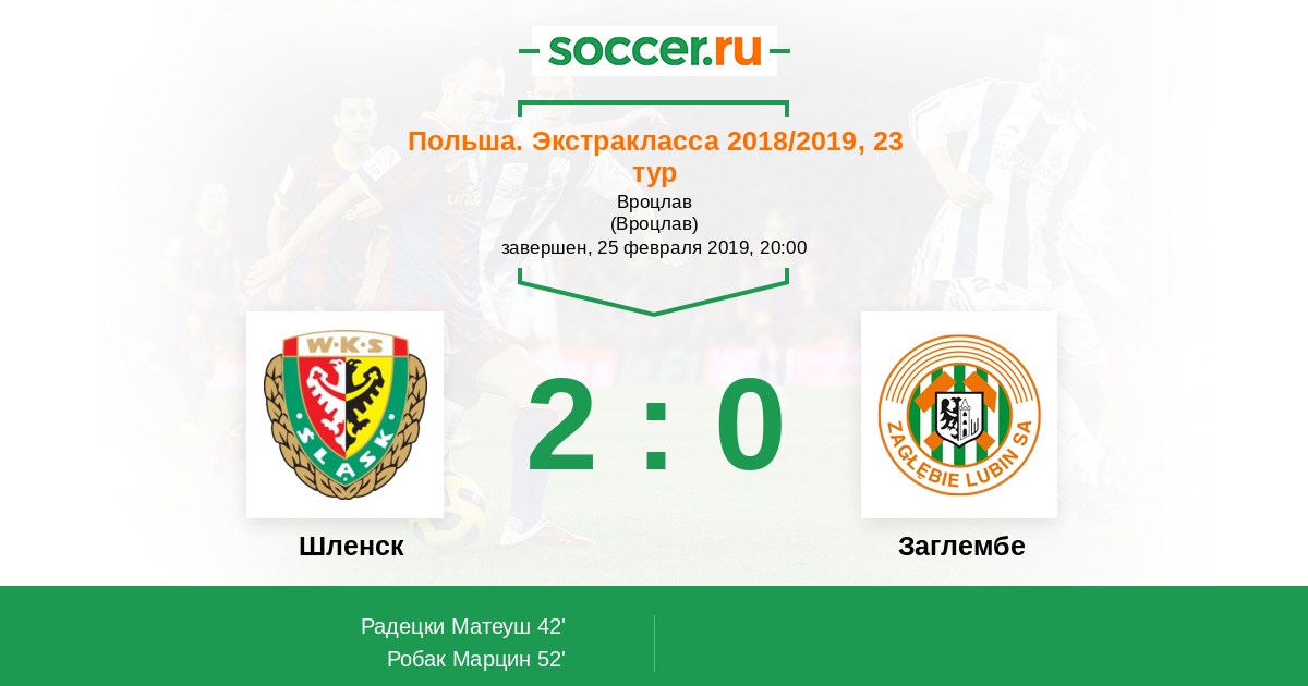 42' (1:0) Радецки Матеуш (23) (Робак Марцин (9))