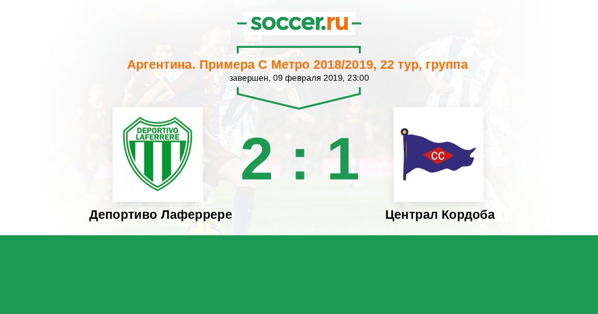 Аргентина. Примера С Метро 20.02.2016 Централ Кордоба Логотип футбольный клуб Централ Кордоба 0:1 Логотип футбольный клуб Депортиво Лаферрере Депортиво Лаферрере