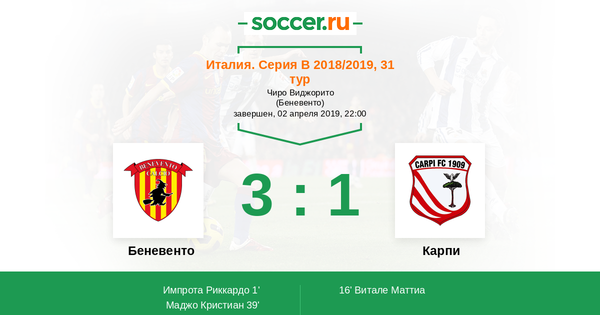 Протокол матча Беневенто против Карпи