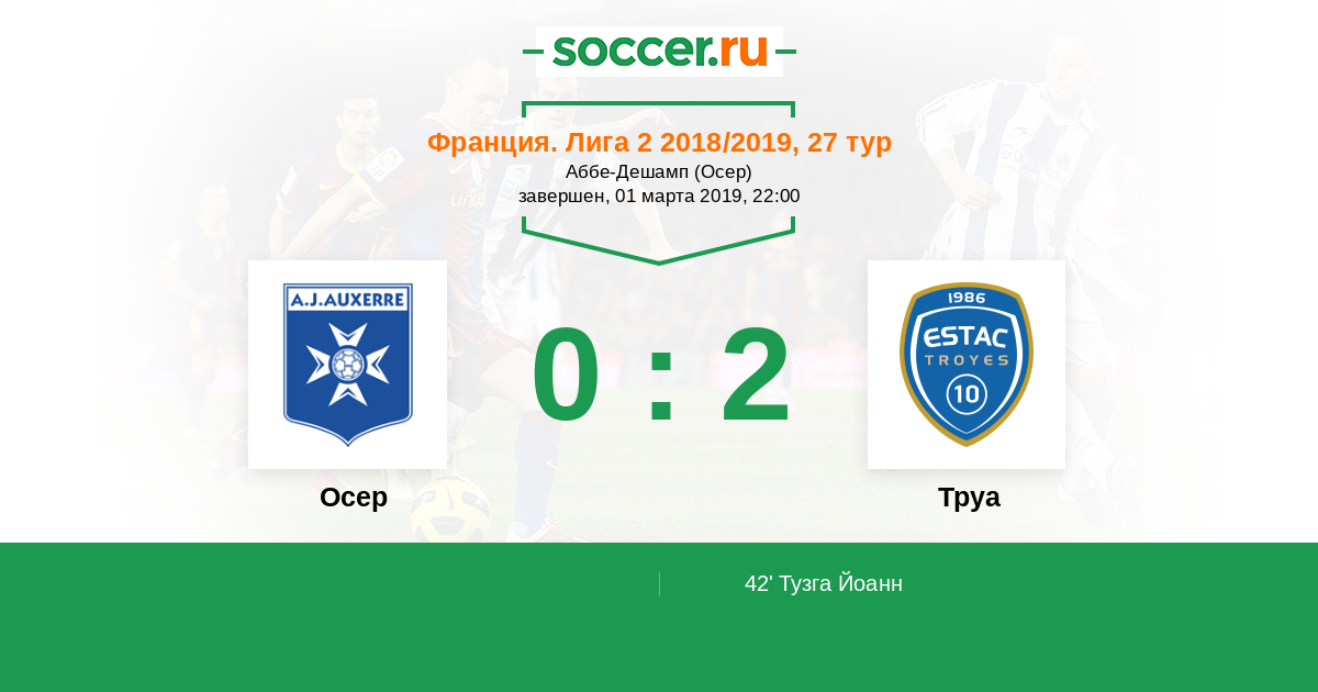 Протокол матча Осер против Труа