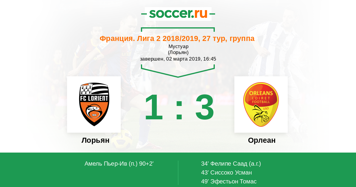 43' (0:2) Сиссоко Усман (8) (Лопи Жозеф (28))