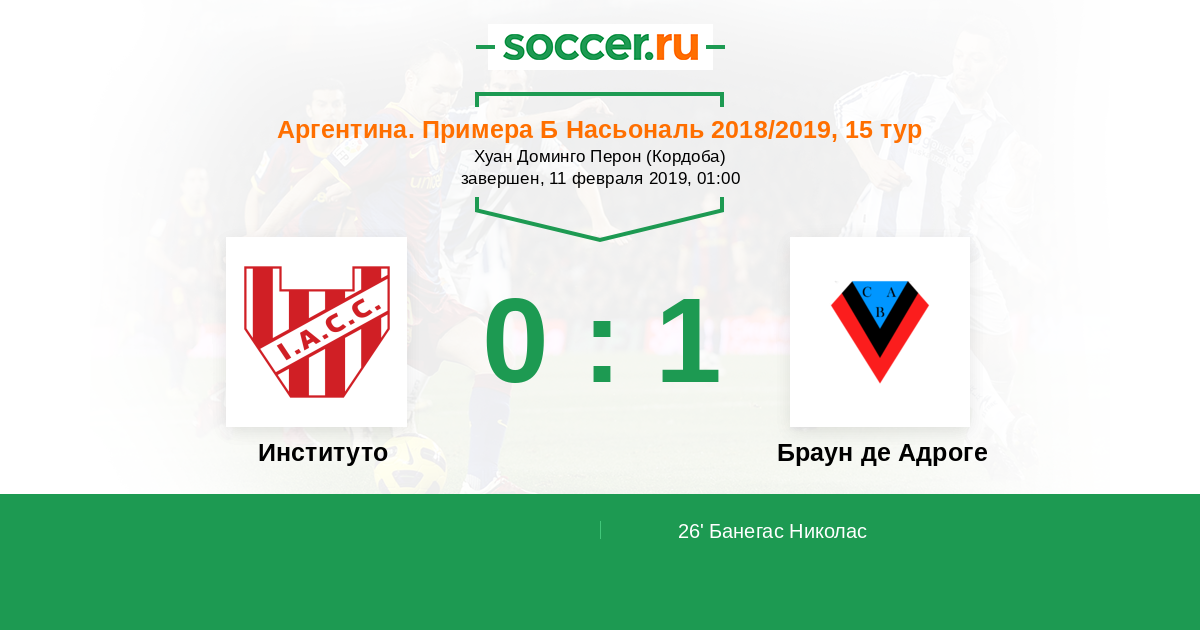 Протокол матча Институто против Браун де Адроге