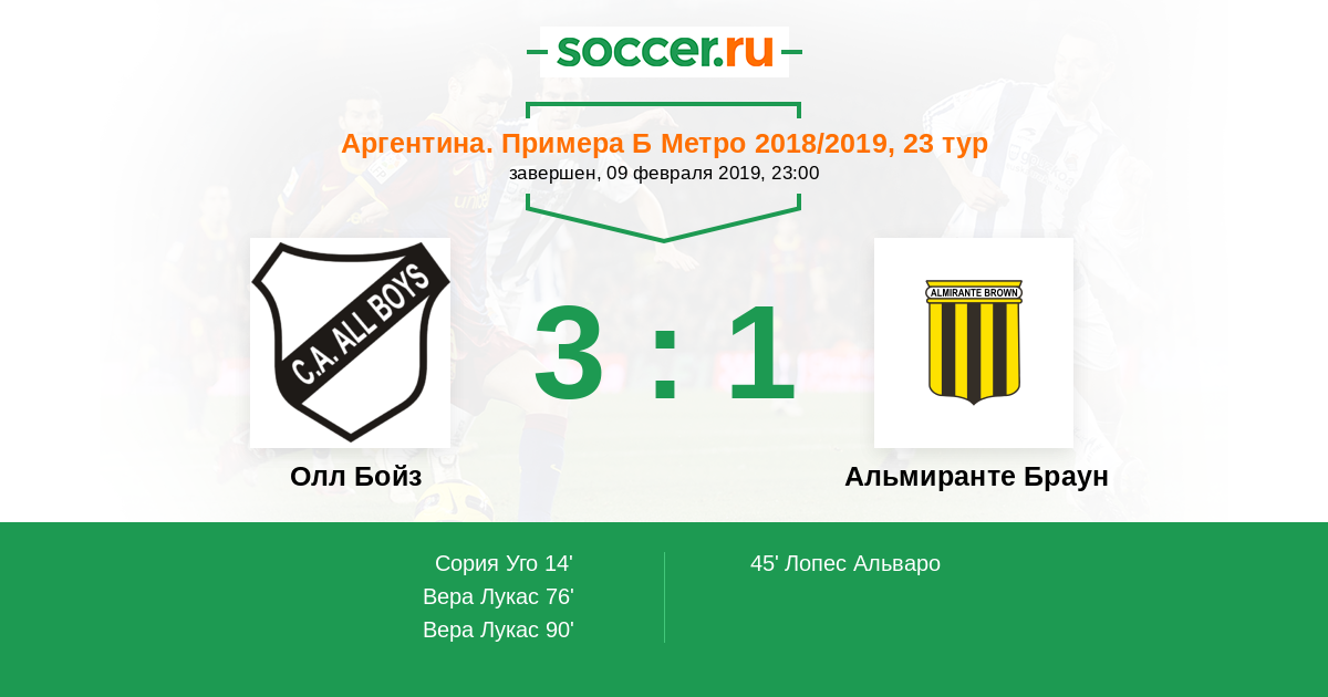 Протокол матча Олл Бойз против Альмиранте Браун