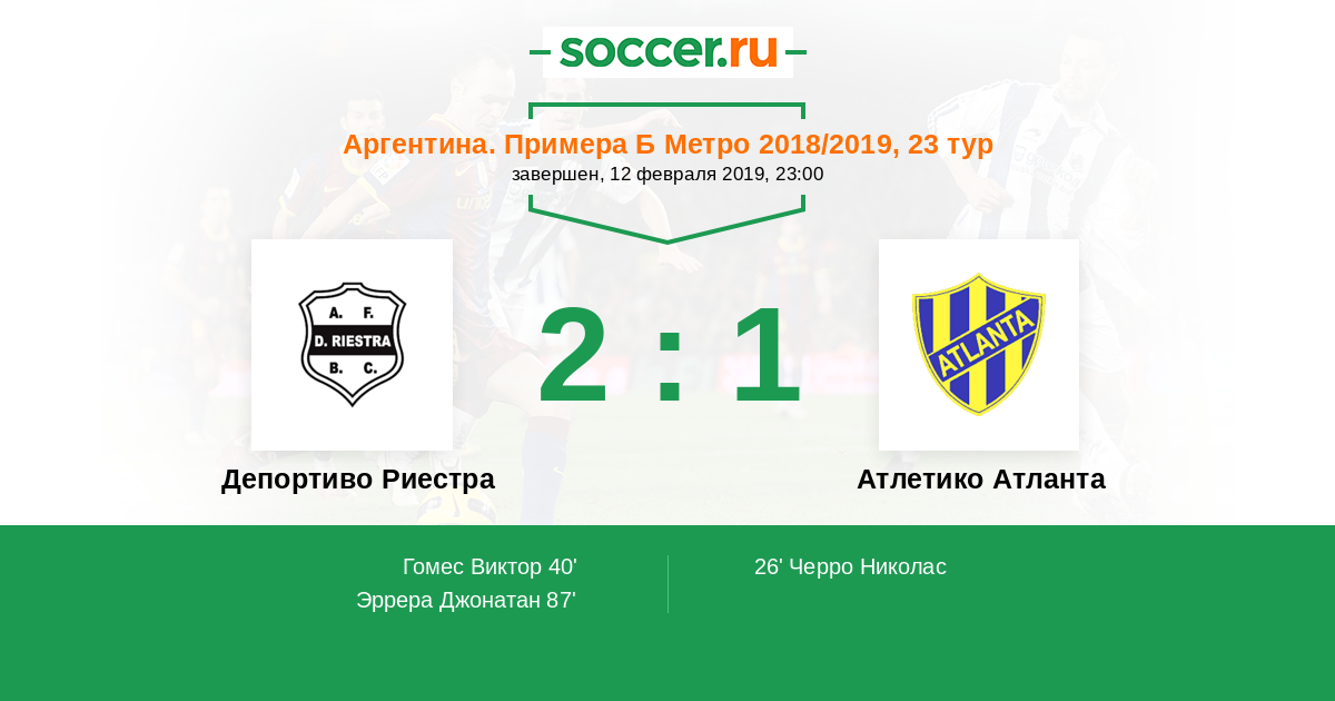 Протокол матча Депортиво Риестра против Атлетико Атланта