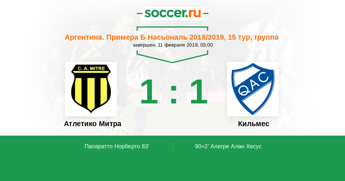 Протокол матча Атлетико Митра против Кильмес