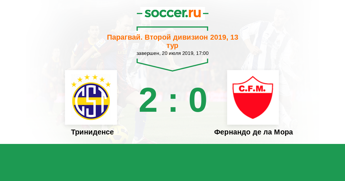 Парагвай. Второй дивизион 31.03.2018 Триниденсе Логотип футбольный клуб Триниденсе (Асунсьон) 0:1 Логотип футбольный клуб Фернандо де ла Мора Фернандо де ла Мора