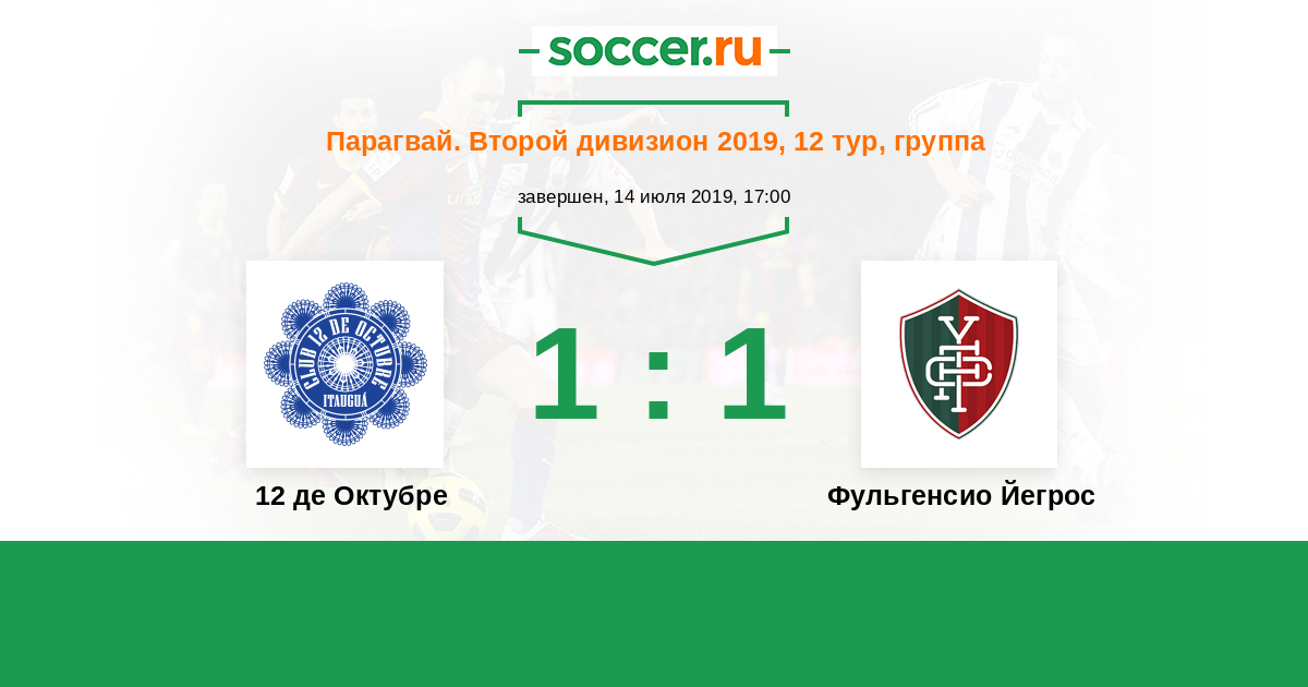 История матча 12 де Октубре против Фульгенсио Йегрос