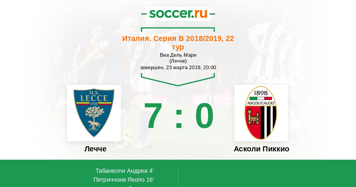19' (3:0) Ла Мантиа Андреа (19) (Кальдерони Марко (27))