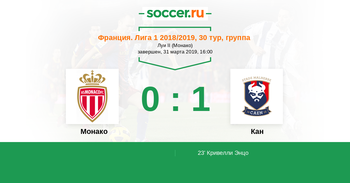 Протокол матча Монако против Кан