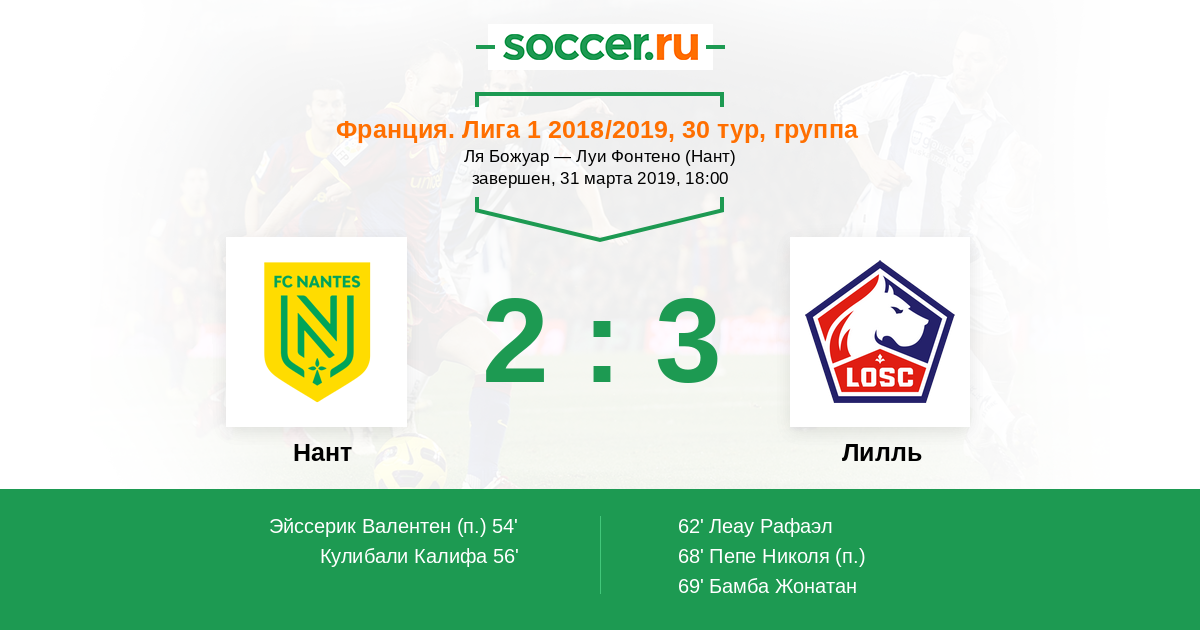 Протокол матча Нант против Лилль
