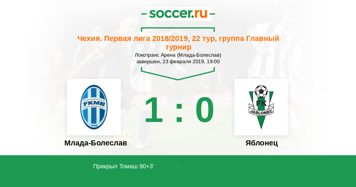 Протокол матча Млада-Болеслав против Яблонец