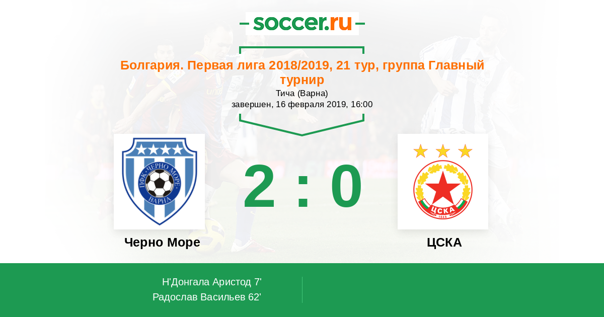 Протокол матча Черно Море против ЦСКА