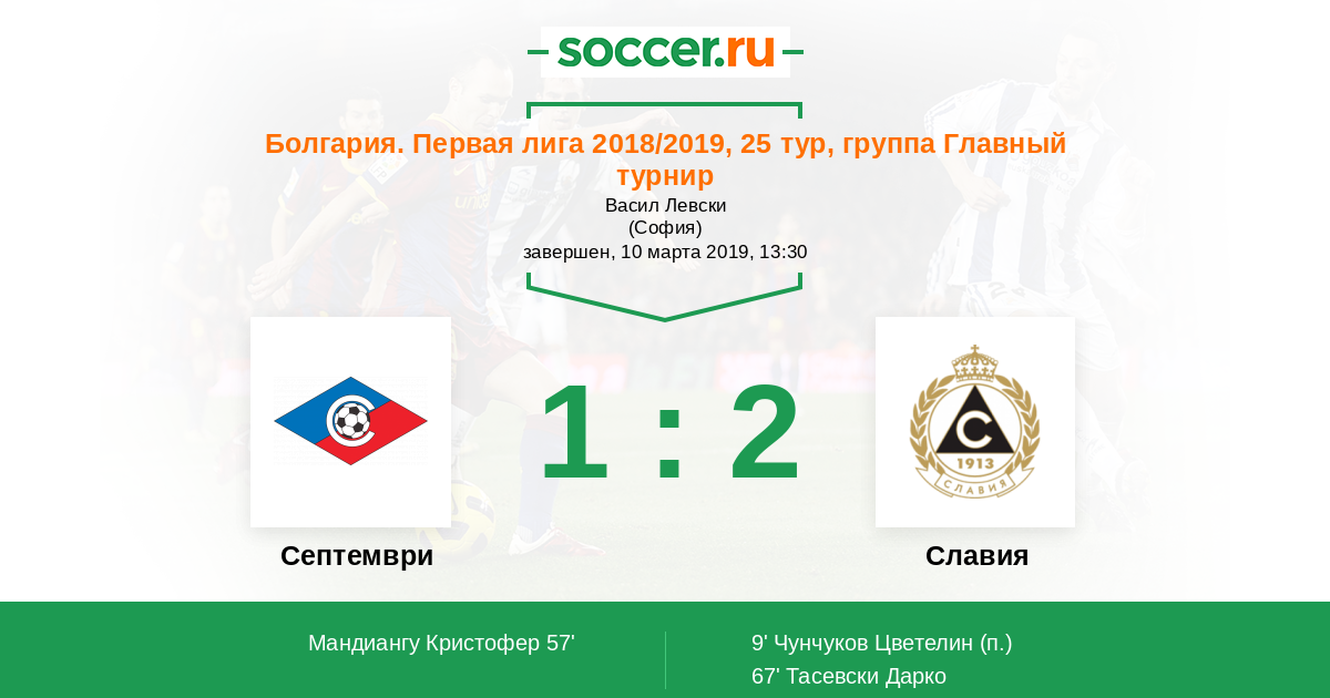 Протокол матча Септември против Славия