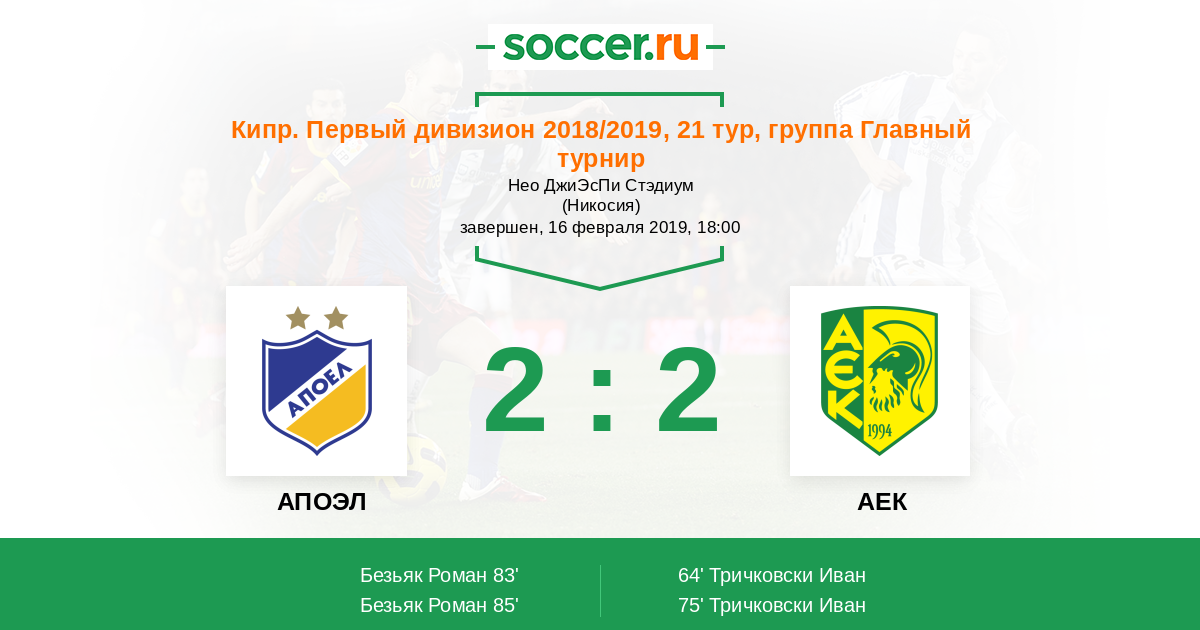 Протокол матча АПОЭЛ против АЕК