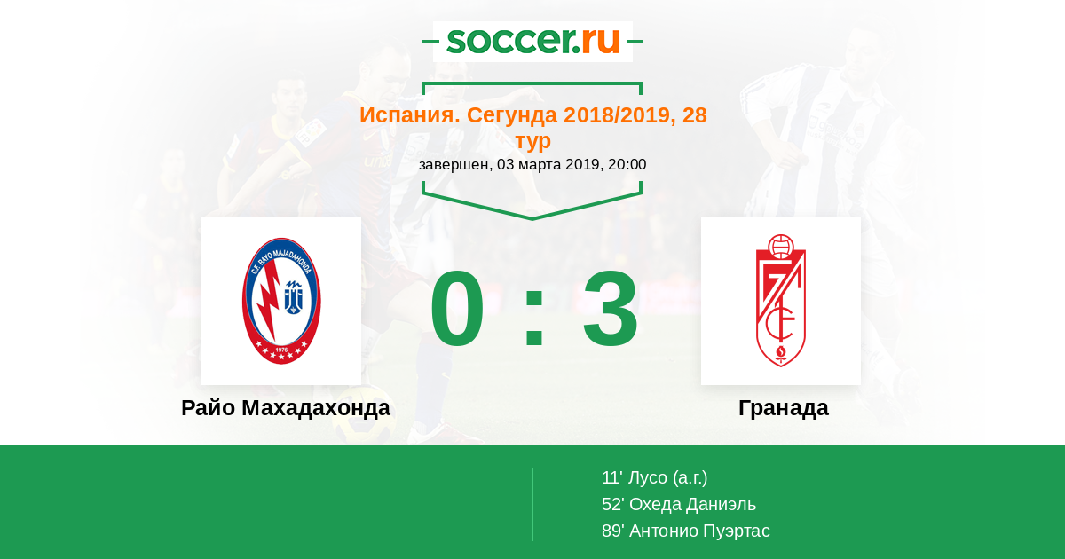 Протокол матча Райо Махадахонда против Гранада