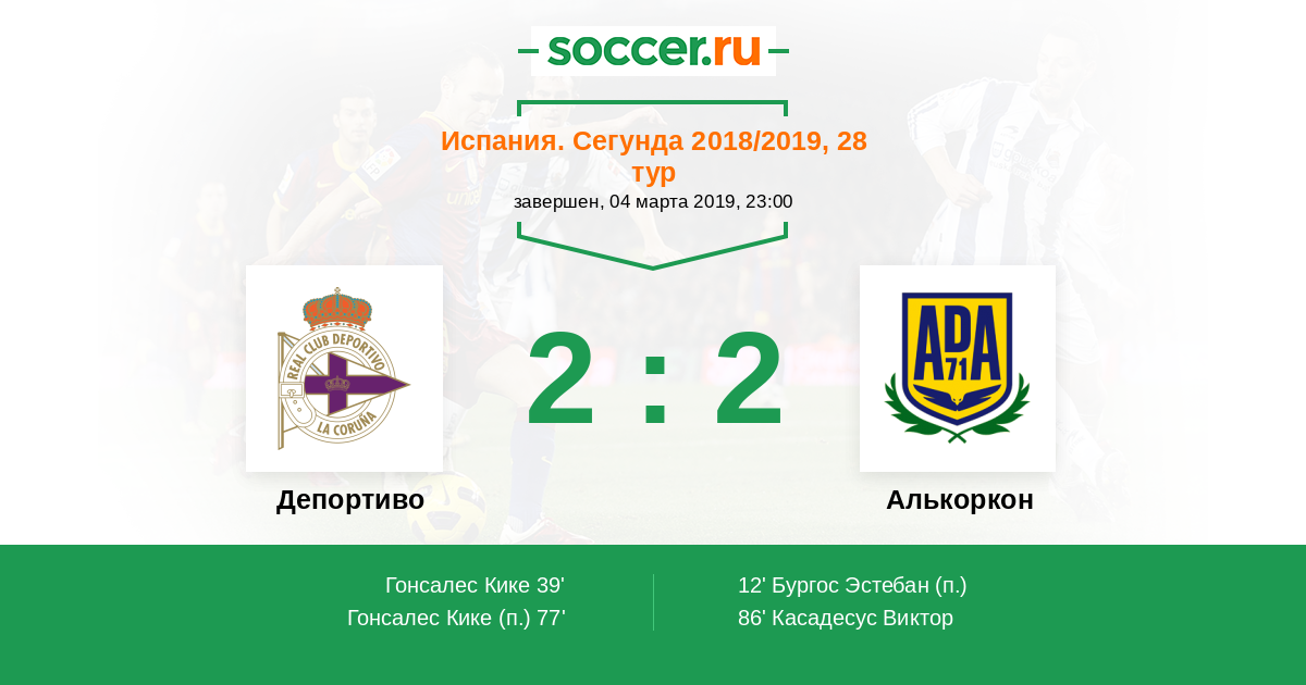 Протокол матча Депортиво против Алькоркон