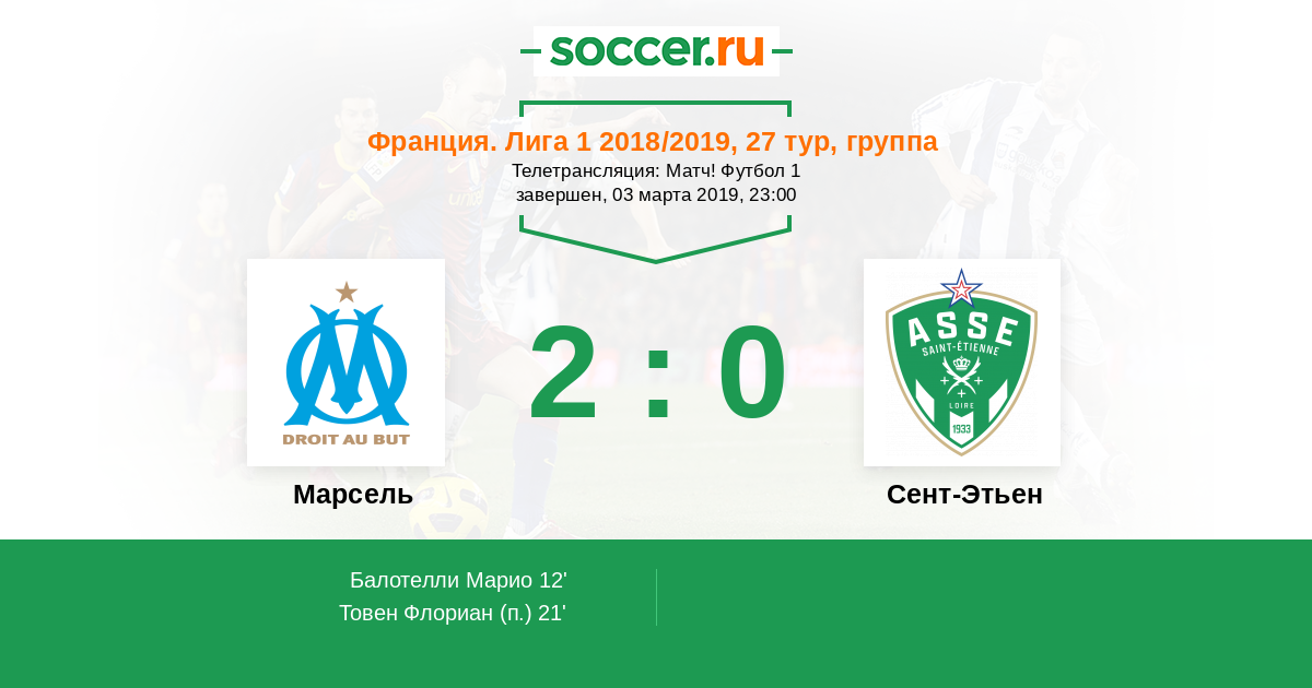 Протокол матча Марсель против Сент-Этьен