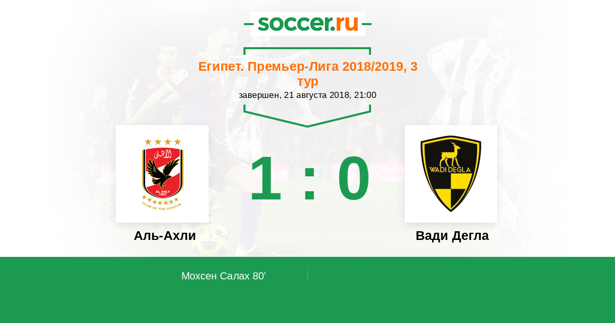 Протокол матча Аль-Ахли против Вади Дегла