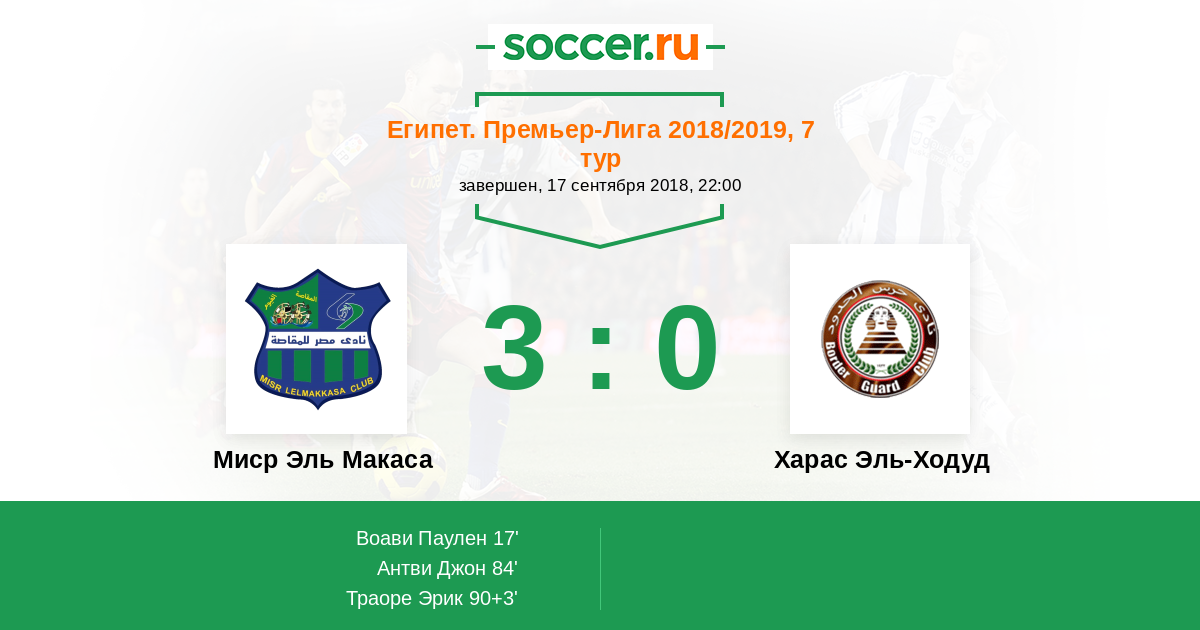 Протокол матча Миср Эль Макаса против Харас Эль-Ходуд