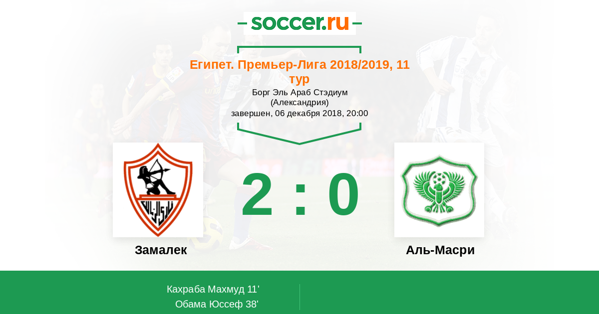 Протокол матча Замалек против Аль-Масри