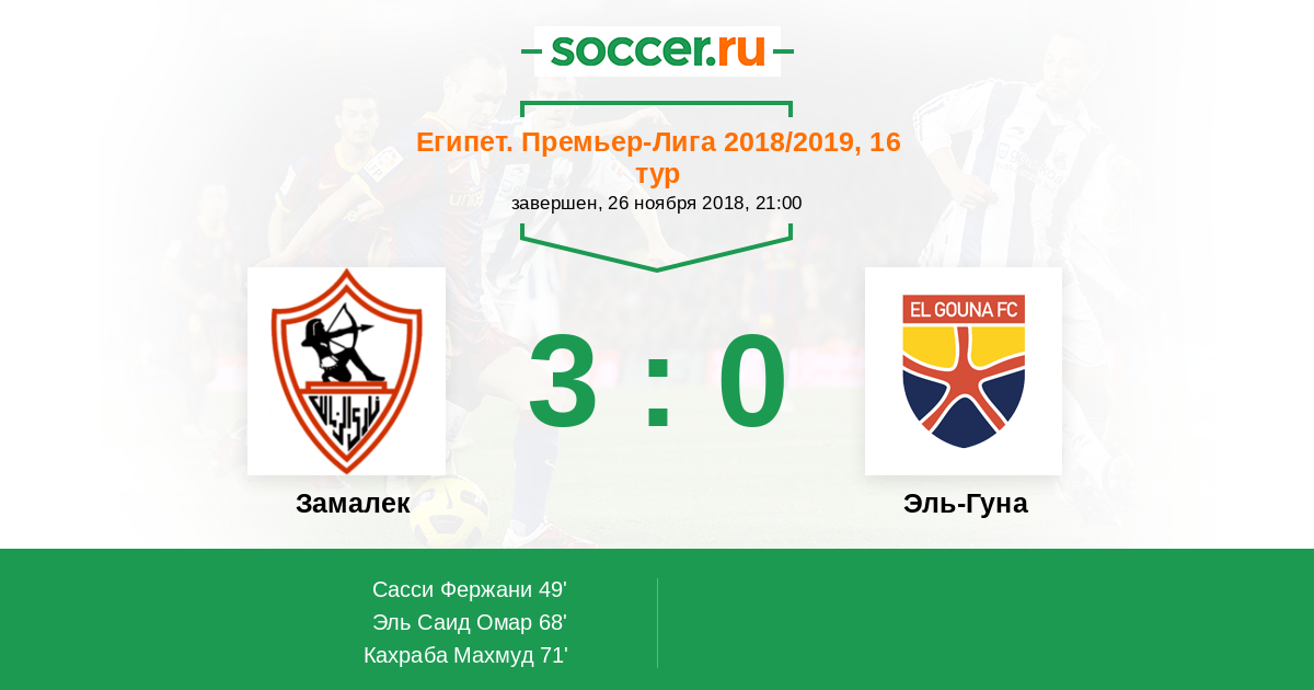 Протокол матча Замалек против Эль-Гуна