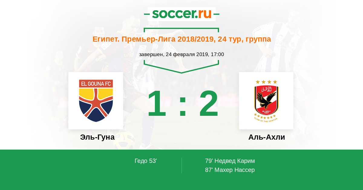 Протокол матча Эль-Гуна против Аль-Ахли