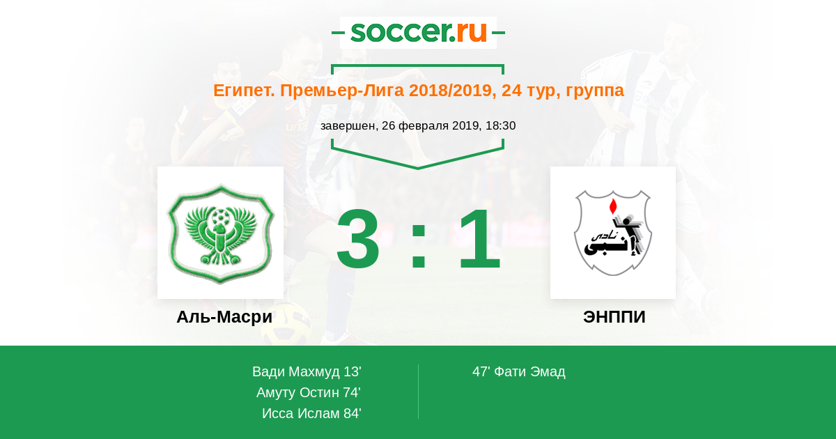 Протокол матча Аль-Масри против ЭНППИ