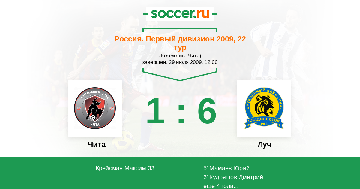 Протокол матча Чита против Луч