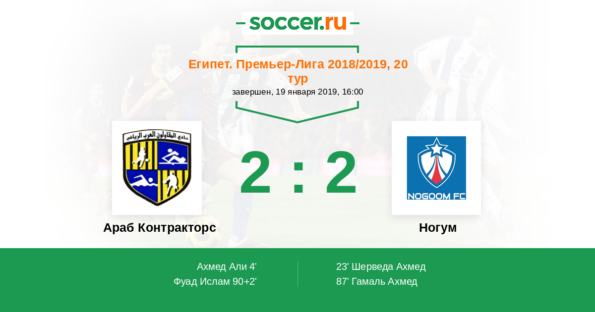 Протокол матча Араб Контракторс против Ногум